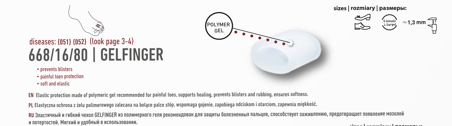 Гел-протекторът Coccinè Gelfinger от ортопедичната серия Anatomic Line на полската марка Coccinè е предназначен за хора с болезнени пръсти. Изработен е от деликатен, много разтеглив полимерен гел.